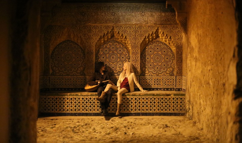 Jag ska ta upp de fina ögonblicken också, efter regn kommer solsken. Det var riktigt vackert när Adam (Tom Hiddleston) tog upp fiolen och spelar ett otroligt fint stycke när gitarrens väsen blivit för störande. När Eve reser från Tanger för att vara med Adam visas en otrolig passion mellan dem två som är svår att inte tycka om. Också så fint när Eve bjuder upp en deppig Adam att dansa i morgonrocken till en gammal goding på grammofonen. Historien kring de olika instrumenten är också fascinerande och roliga att lyssna på. John Hurts biroll är också mycket bra, allt han säger är fint och intressant. Den sista musikaliska showen de lyssnar på är riktigt unik, vackert främmande språk som sjungs av härlig orientalisk dam.